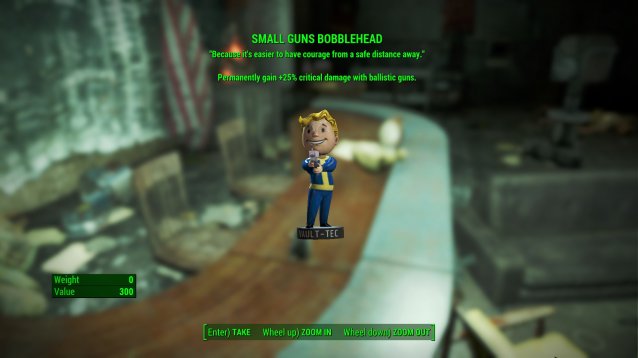 You can collect the Small guns bobblehead at the gunners’ plaza and enable the gamer to hit with a twenty-five percent critical damage when using ballistic ammo. Inside the building, there is a room with a sign above the doors saying on the air. You will be required to be able to pick master level locks to get inside. Once in, you’ll see the bobblehead on the desk.